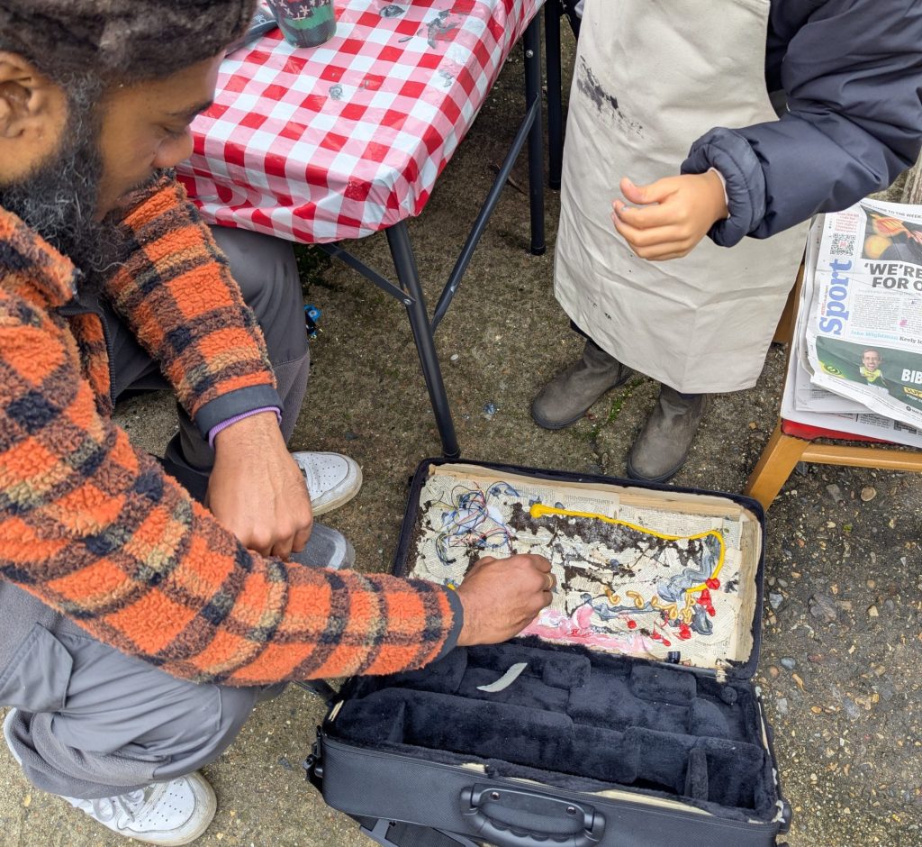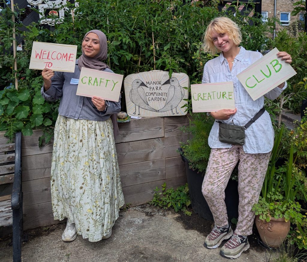I ran two upcycling workshops at Manor Park Community Garden, funded by Newham Council. We provided art materials and objects that had been donated or discarded and the group came together to make pieces of art and sculptures. A lot of the items had been left on our local streets so it also meant we were tidying up, too! All art materials was donated or reclaimed.